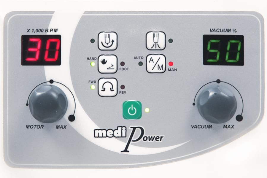 Автоматический режим – аппарат регулирует мощность всасывания автоматически в зависимости от скорости вращения фрезы (чем выше скорость вращения, тем выше мощность всасывания).