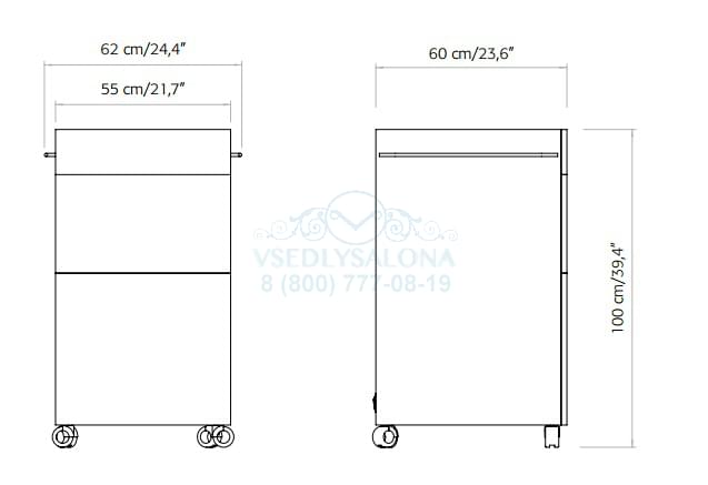 Модель имеет несколько выдвижных ящиков, а также отделений с распашными дверцами. Мобильность тумбы достигается за счет наличия бесшумных колесиков. В комплектацию входит холодильник, нагреватель для полотенец, нагревательная плита. Данная модель – один из лучших вариантов сочетания функциональности, стильного дизайна и отменного качества.